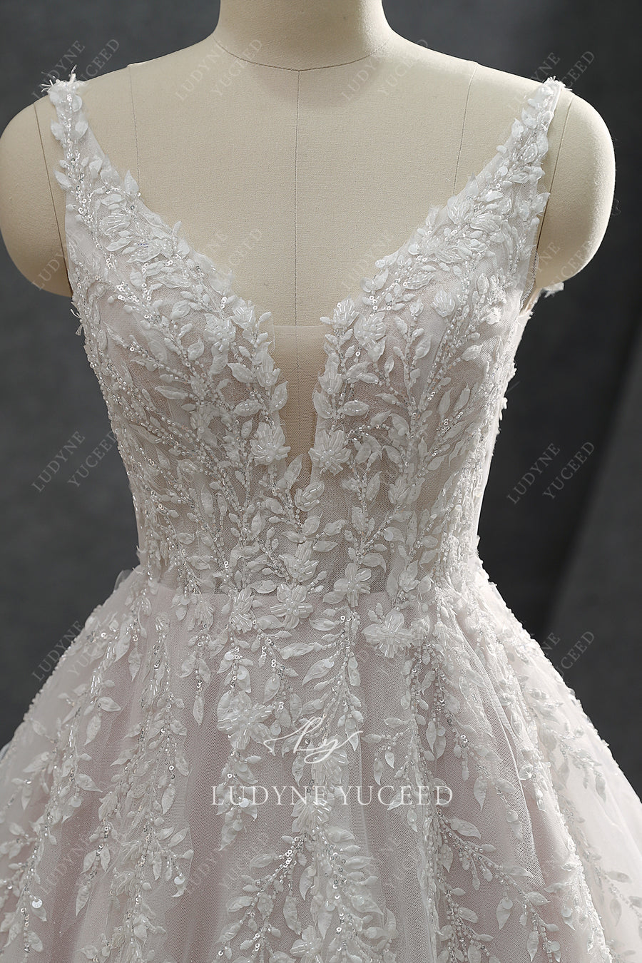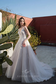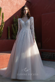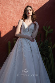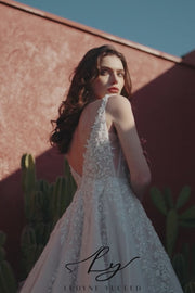 This elegant Classic Ballgown features a timeless V Neck design and detachable long sleeves, bringing versatility to your special day. Crafted with expert craftsmanship, this wedding dress offers a stunning silhouette and comfortable fit that will make you feel confident and beautiful on your wedding day.