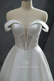El estilo LY3284 presenta un escote corazón con tirantes fuera del hombro y un corpiño de alta costura confeccionado por expertos. Un escote profundo de tul ilusión y aberturas delanteras están adornados con detalles de perlas brillantes para combinar con el detalle luminoso de la espalda ilusión. Desde la cintura entallada, se despliega una lujosa falda tipo vestido de gala con bolsillos para las manos de gran satén, que revela una silueta clásica y un vestido de novia atemporal para la mujer moderna. novia.
