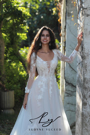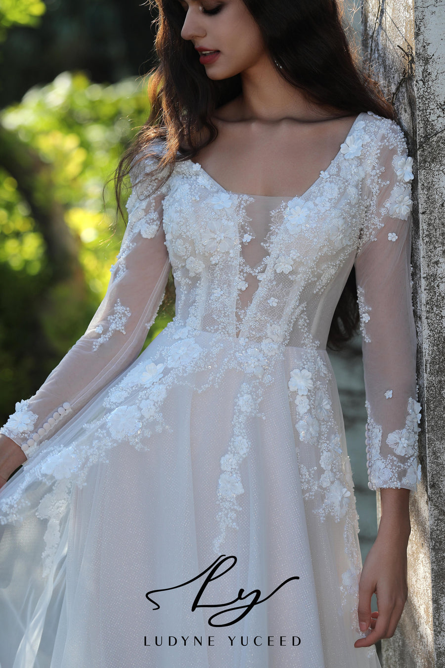 Eres una romántica nata. Fue tu interés en este exclusivo vestido de novia de organza floral en 3D: exuberante con ilusión, perfecto para retratos nupciales caprichosos. El delicado encaje floral bordado esmerilado y las mangas largas desmontables añaden un efecto de cuento de hadas al vestido.